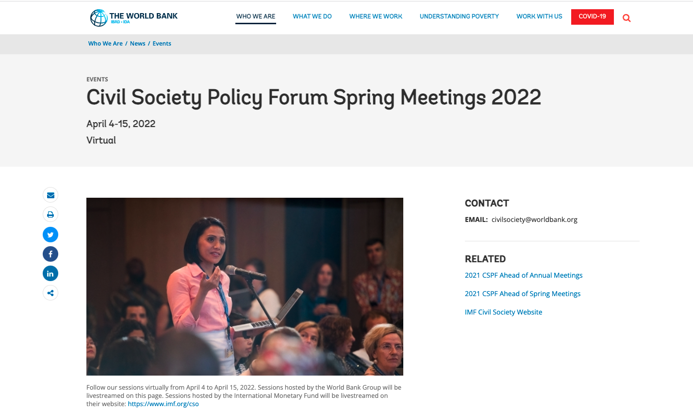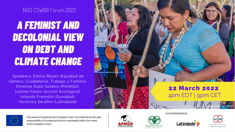A Feminist and Decolonial View on Debt and Climate Change March 22, 2022, 16:00 PM - 17:30 PM EDT Read more ...
